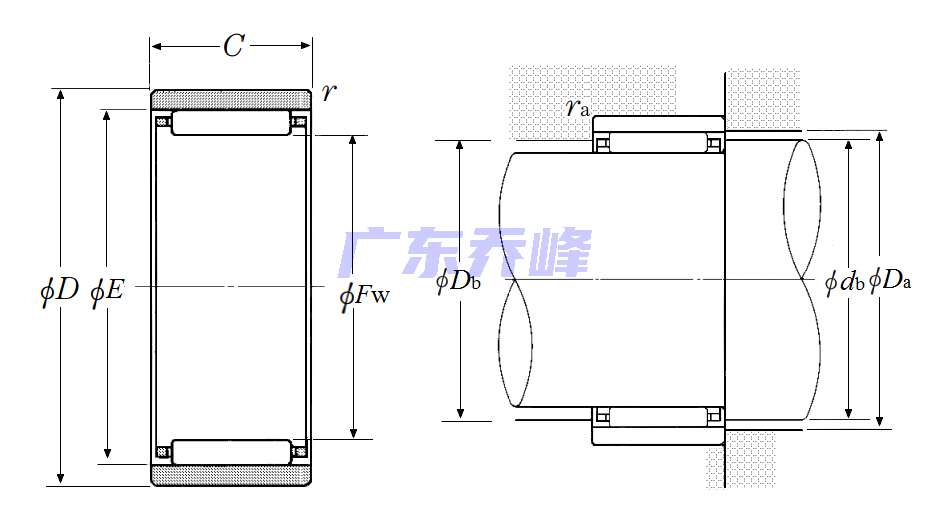 | 機加工滾針軸承 -可分離型型不帶內圈 - 尺寸 | |