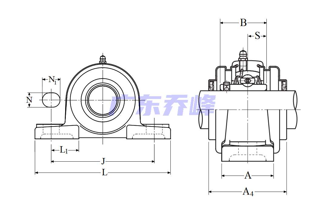 軸承型號:S-UCP205D1,軸承座,帶緊定螺釘,壓制鋼防塵蓋,開式端蓋,UCP型