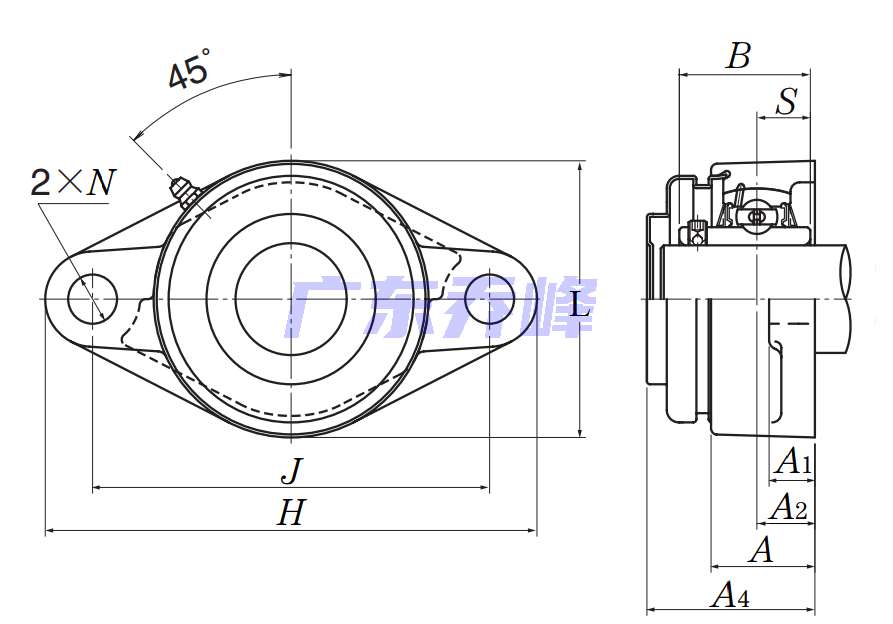 | 類型 | 雙螺栓菱形法蘭式軸承座單元 |