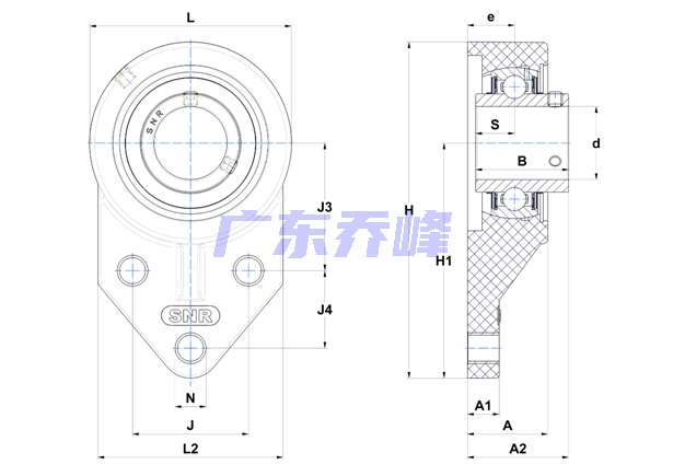 | 三螺栓法蘭式軸承座單元,熱塑性外殼,帶緊定螺釘,SUCFBL型 - 尺寸 | |