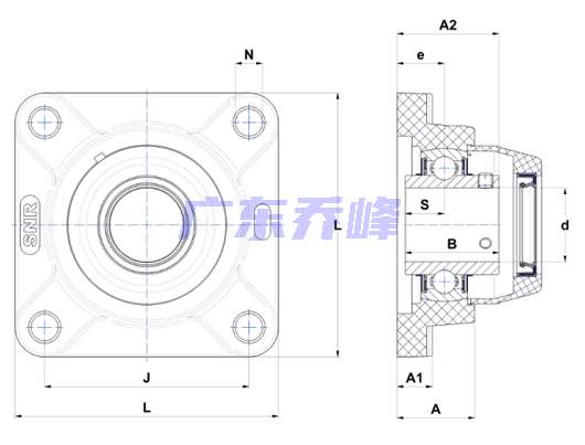 類型 四螺栓方形法蘭式軸承座