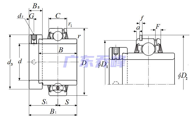 | 帶偏心鎖緊套的外球面軸承,寬外圈 - 圓柱內徑,帶止動環 - 尺寸 | |