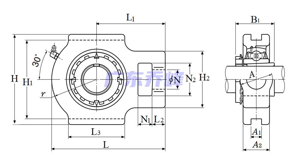 | 滑塊式軸承座,鑄造外殼,帶緊定襯套,UKT型 - 尺寸 | |
